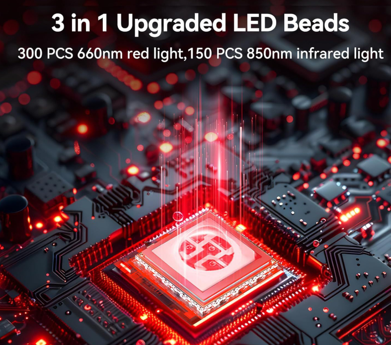 - LEDs de luz vermelha: 300 unidades (660nm)