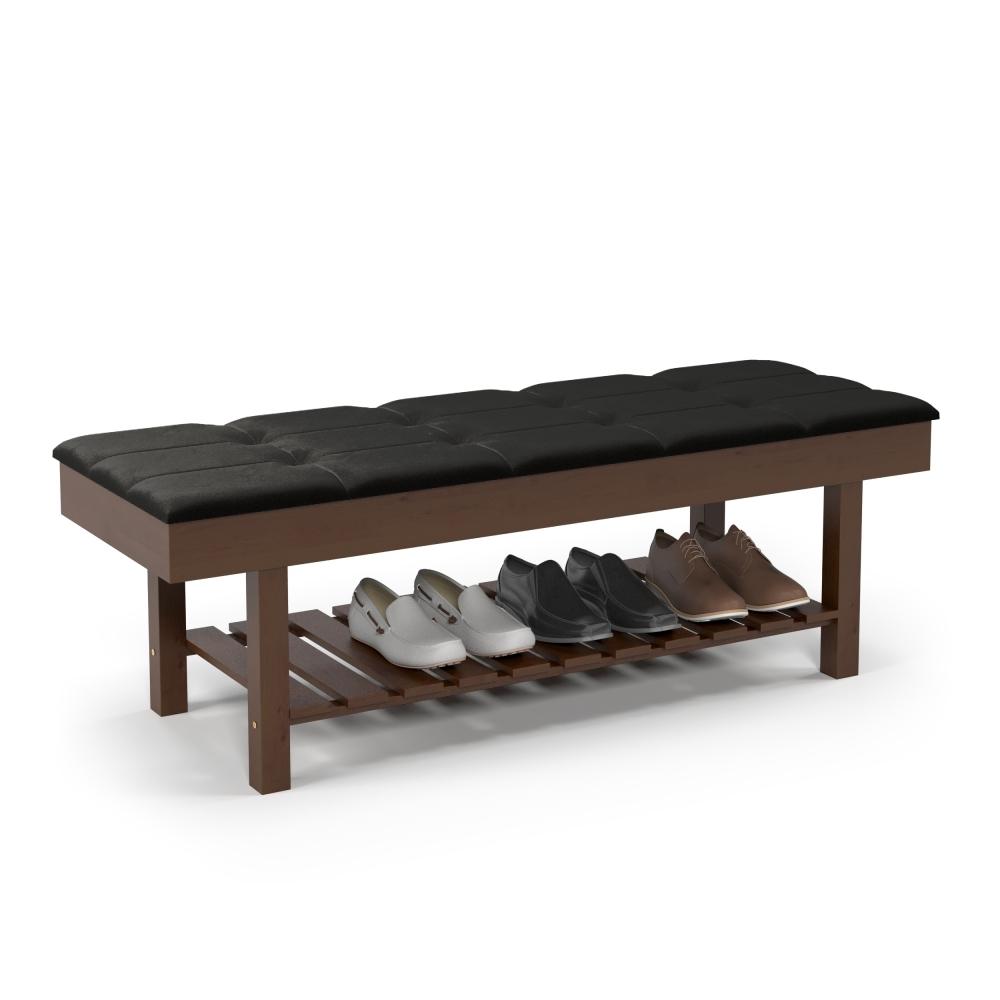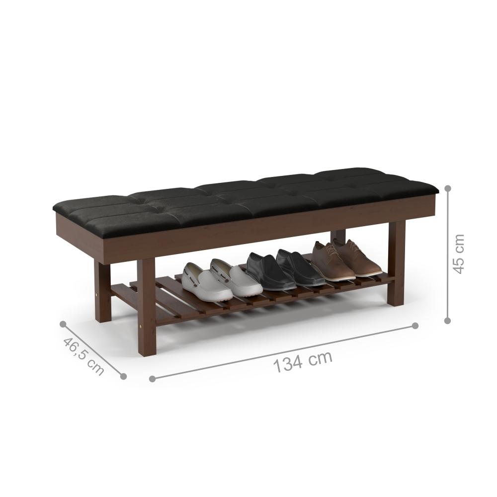 Seu assento almofadado oferece conforto para sentar e calçar os sapatos, enquanto a sapateira interna permite armazenar calçados de maneira prática e discreta. Com estrutura em MDP e prateleira interna, o banco garante durabilidade e excelente aproveitamento de espaço.
