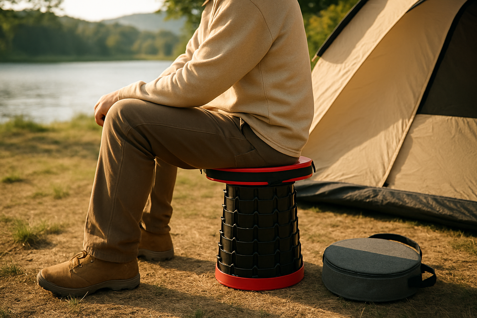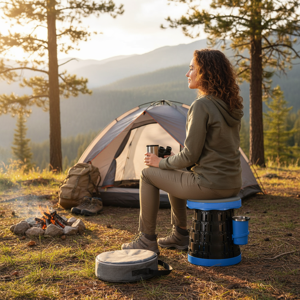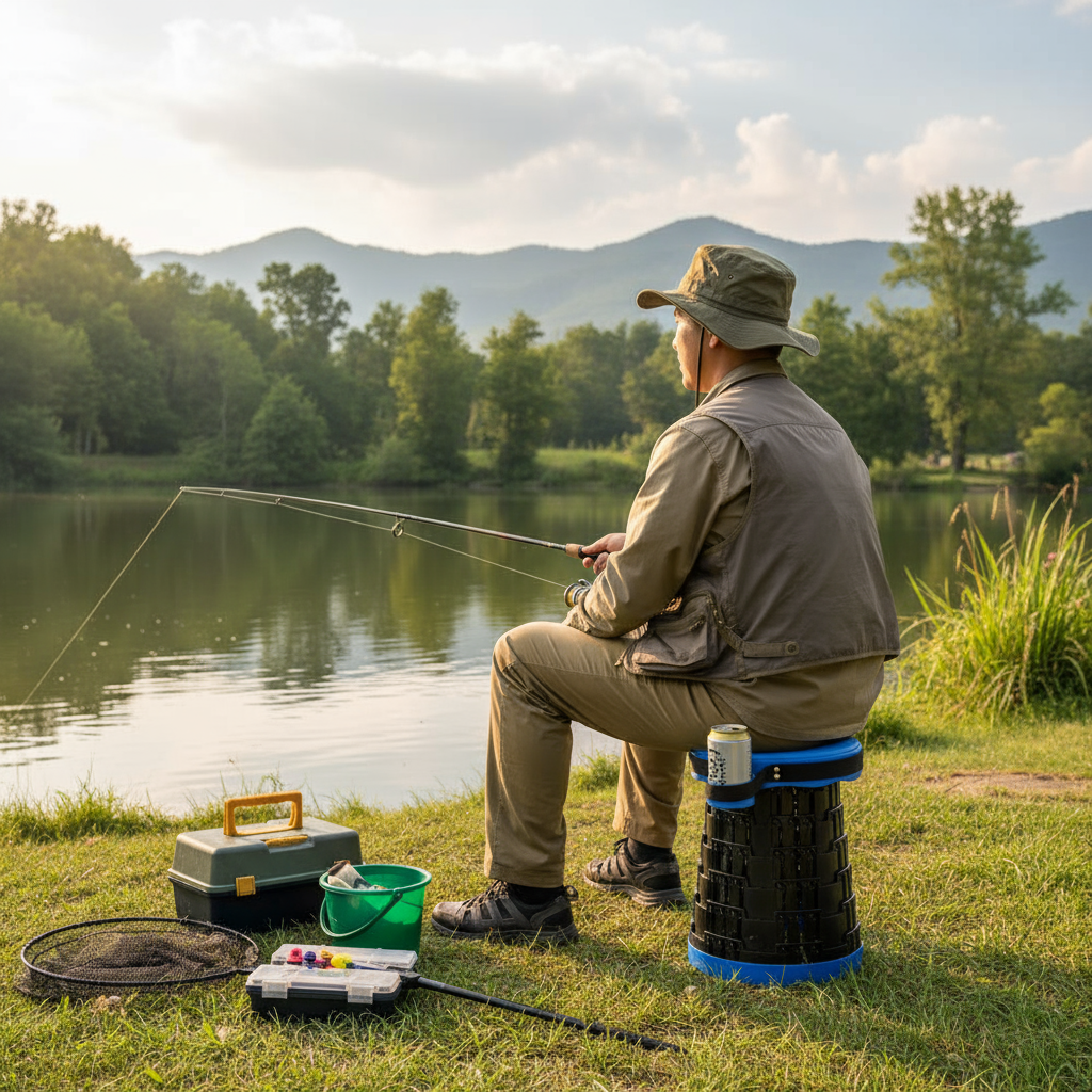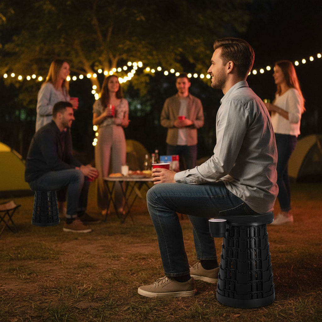 Banco telescópico retrátil, compacto e extremamente resistente, suportando até 250 kg. Possui assento em PU confortável e estrutura em polipropileno, ideal para viagens, pesca, camping e uso diário. Fecha em poucos segundos e ocupa pouquíssimo espaço.