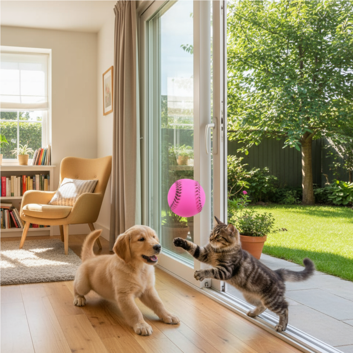 Estímulo sonoro: Apito interno que mantém o pet animado e curioso.