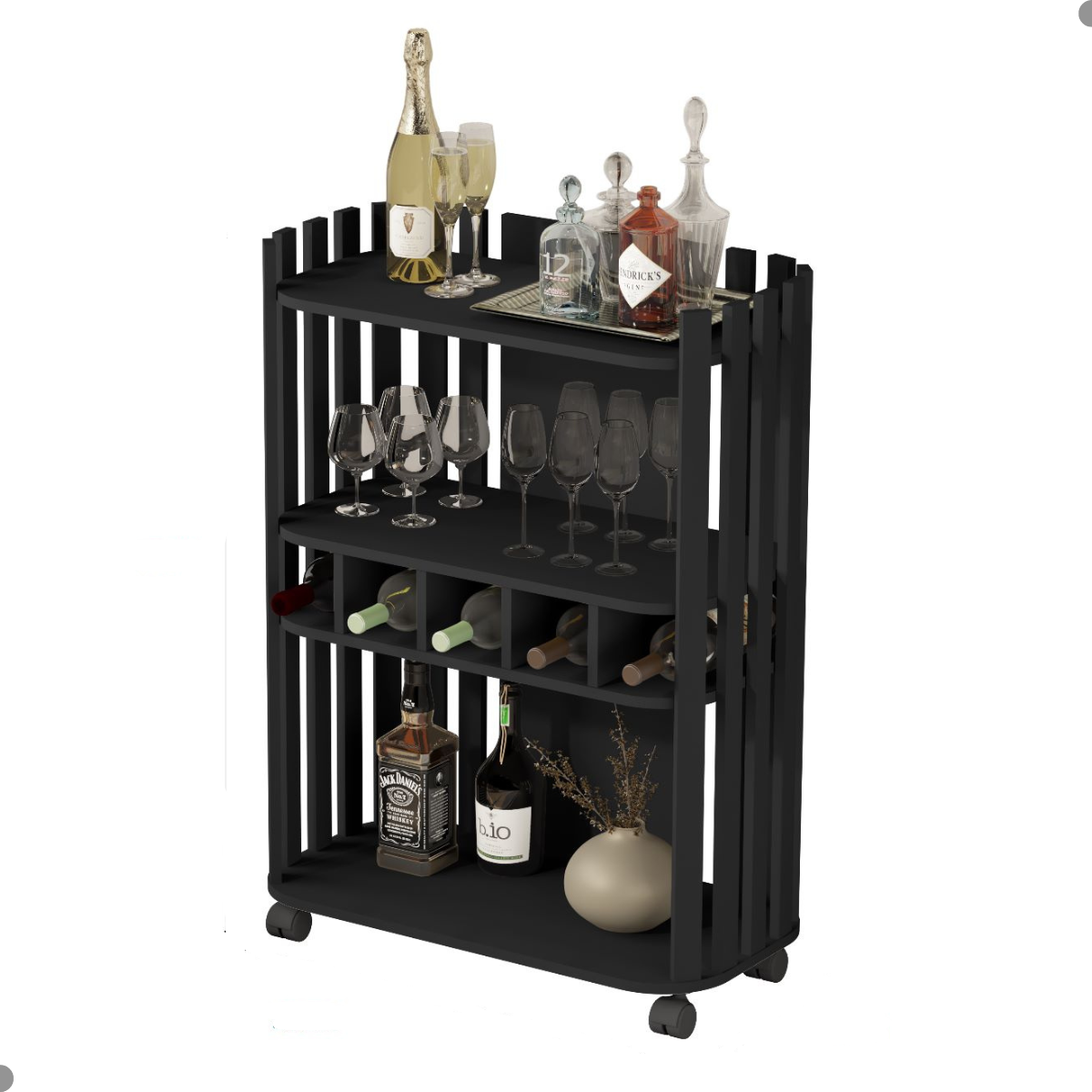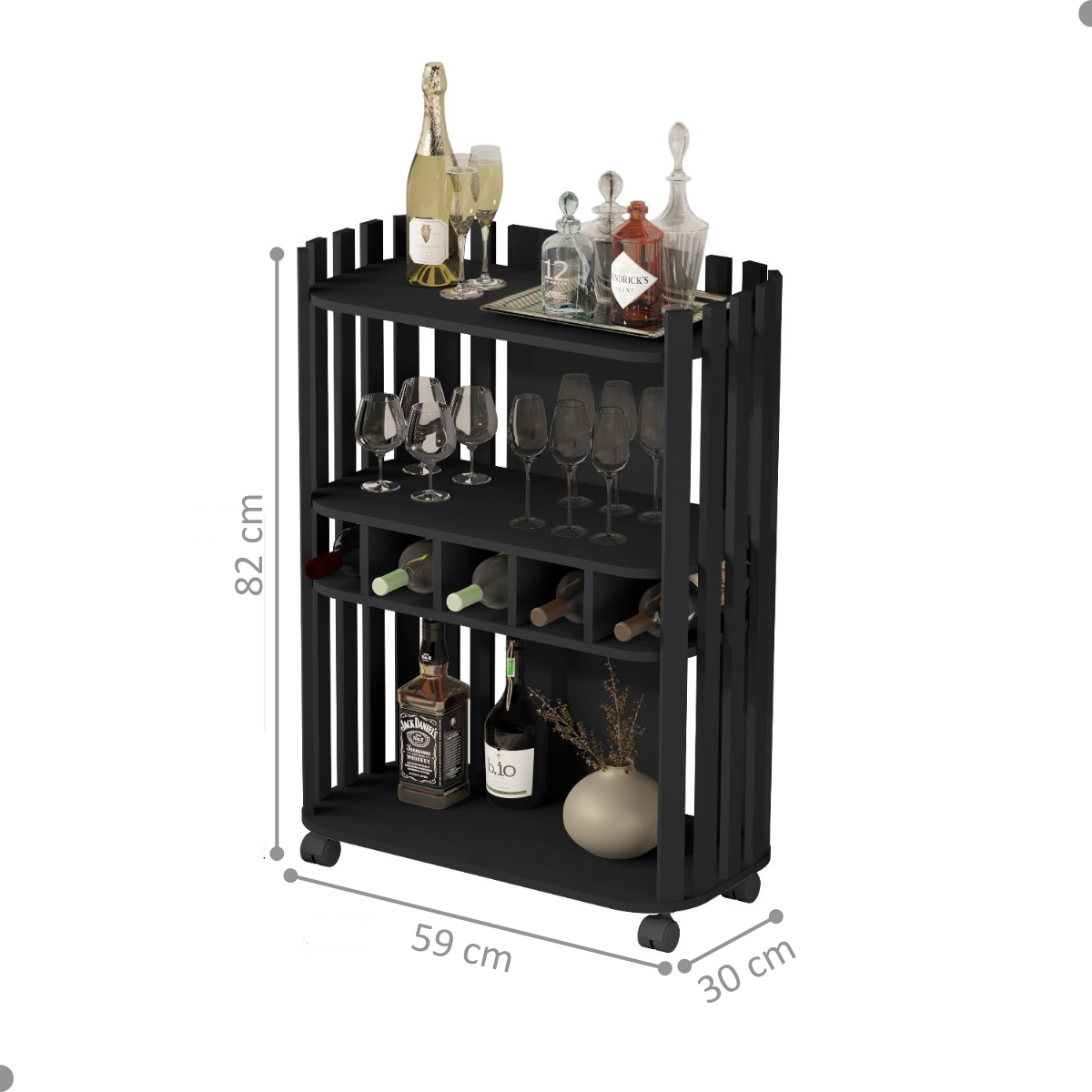 Sem portas e gavetas, o móvel oferece praticidade no acesso aos itens, sendo perfeito para acomodar bebidas, garrafas, taças, objetos decorativos ou utensílios de bar. Produzido em MDF, garante resistência e durabilidade para o uso diário.
