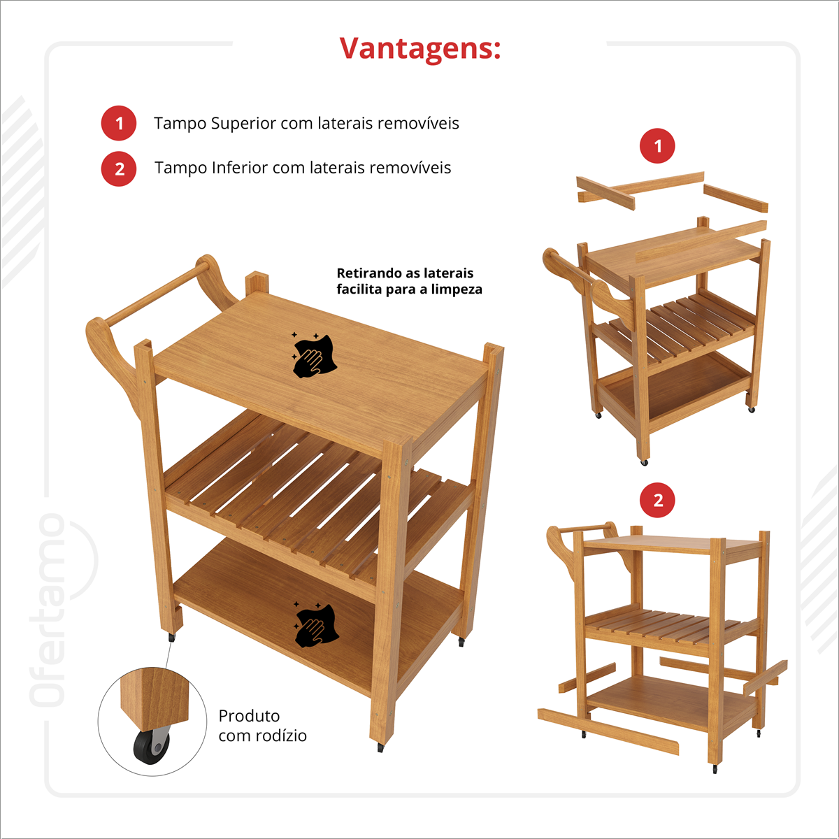 • Laterais removíveis no tampo superior e inferior, facilitando o uso e a limpeza.