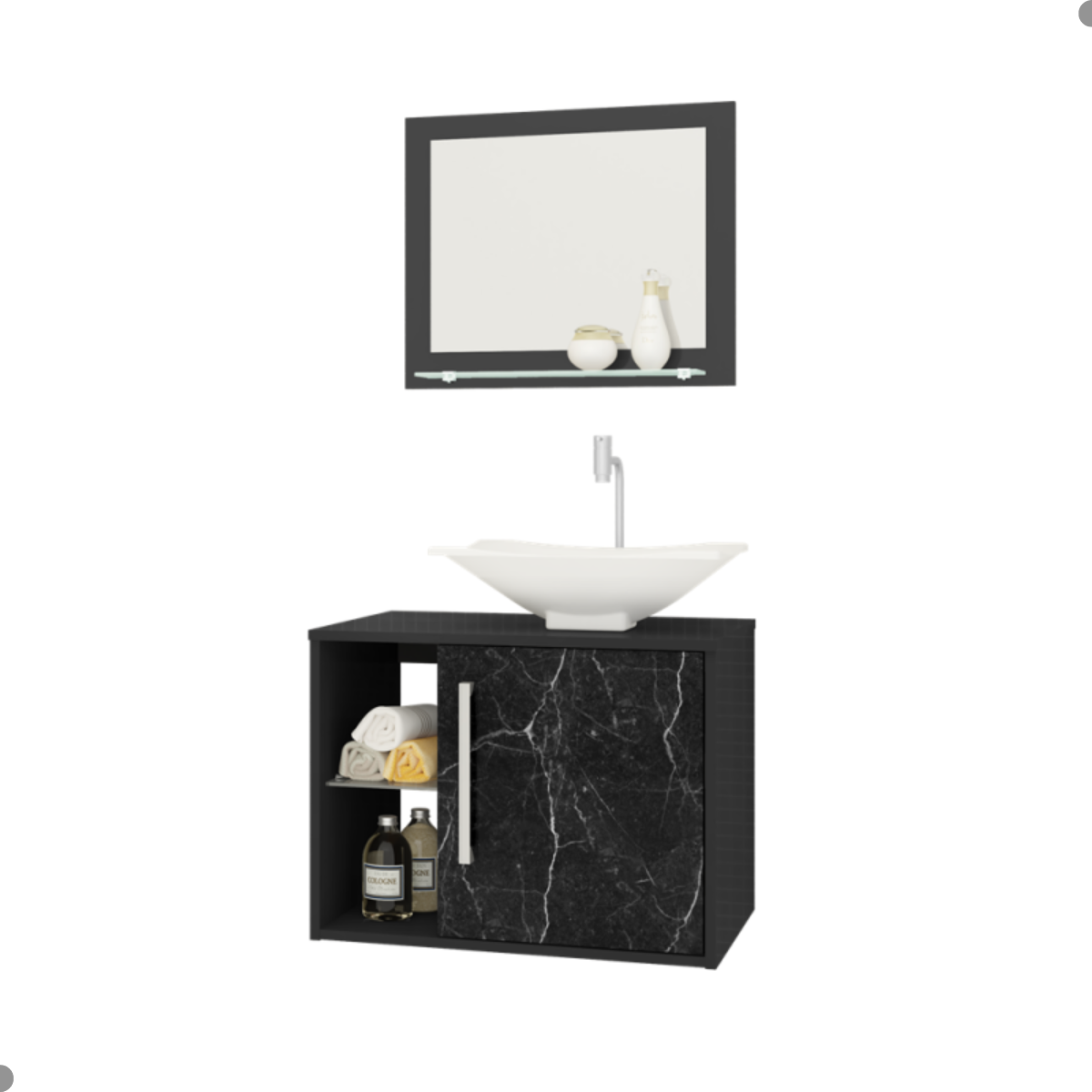Gabinete funcional, ideal para organização do banheiro.