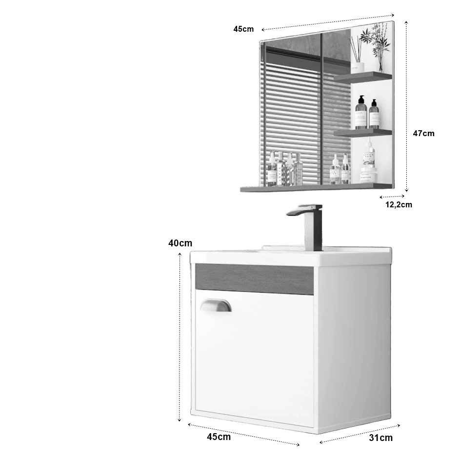 Gabinete e Espelheira para Banheiro com Suporte Branco Cedro – Hércules Ofertamo