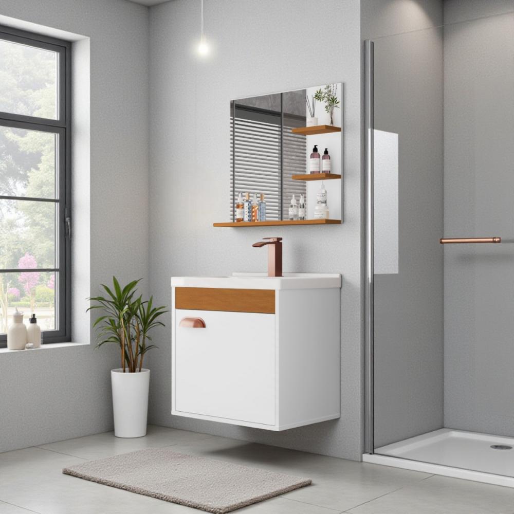 Seu acabamento em verniz poliéster semi-brilho proporciona maior durabilidade e um toque elegante, enquanto o puxador cromado adiciona modernidade ao design. A combinação das cores Branco e Cedro valoriza o espaço e se adapta facilmente a diferentes estilos de banheiro.