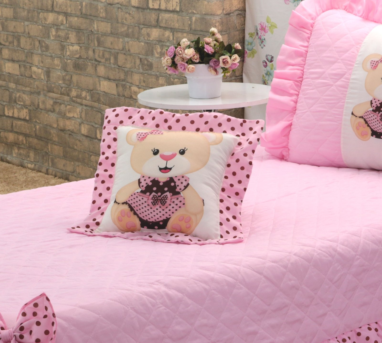 Kit Cobre Leito Ursinha – Solteiro – Rosa – 3 Peças