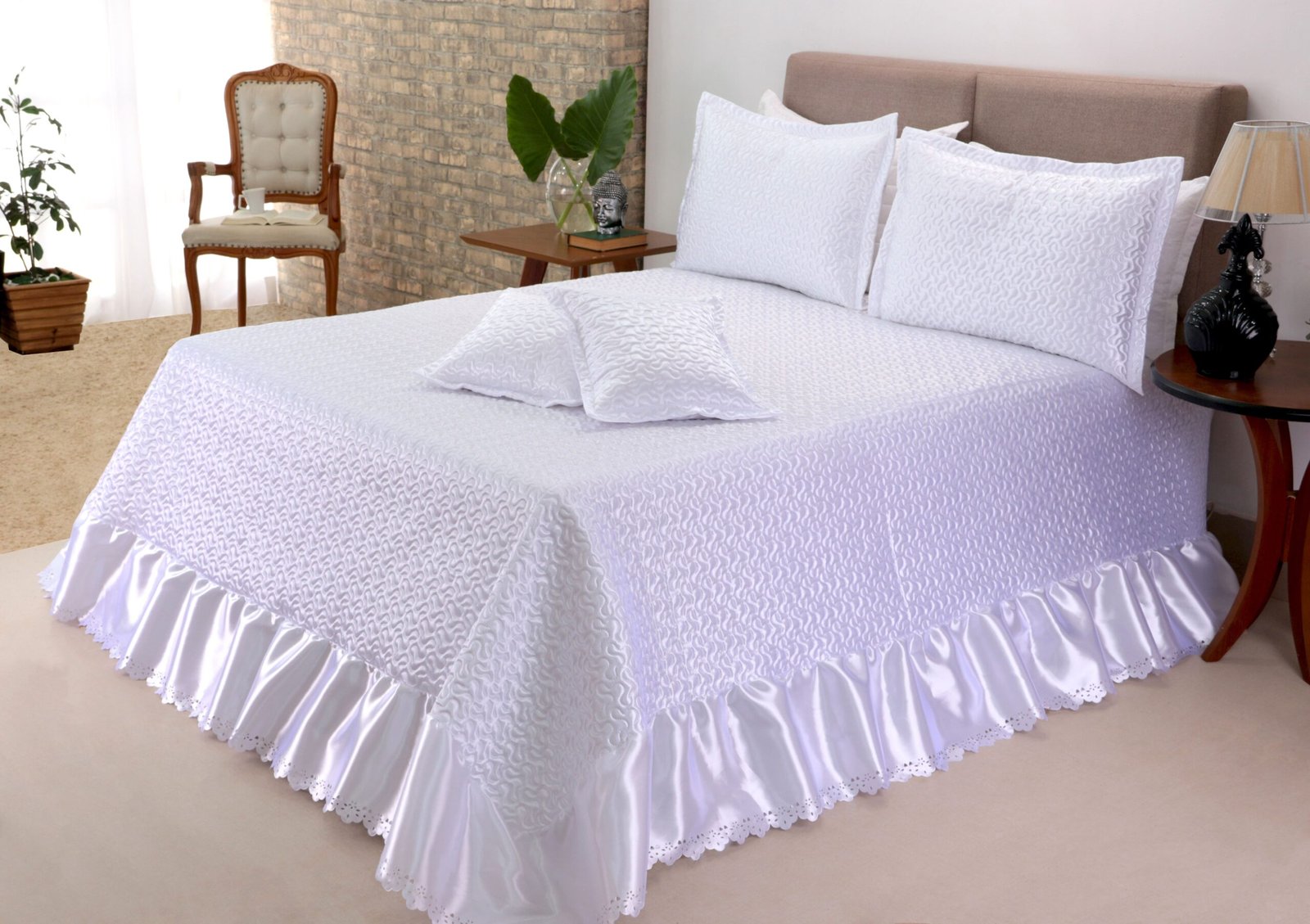 Kit De Colcha Cobre Leito Athena Casal Queen 05 Peças – Branco