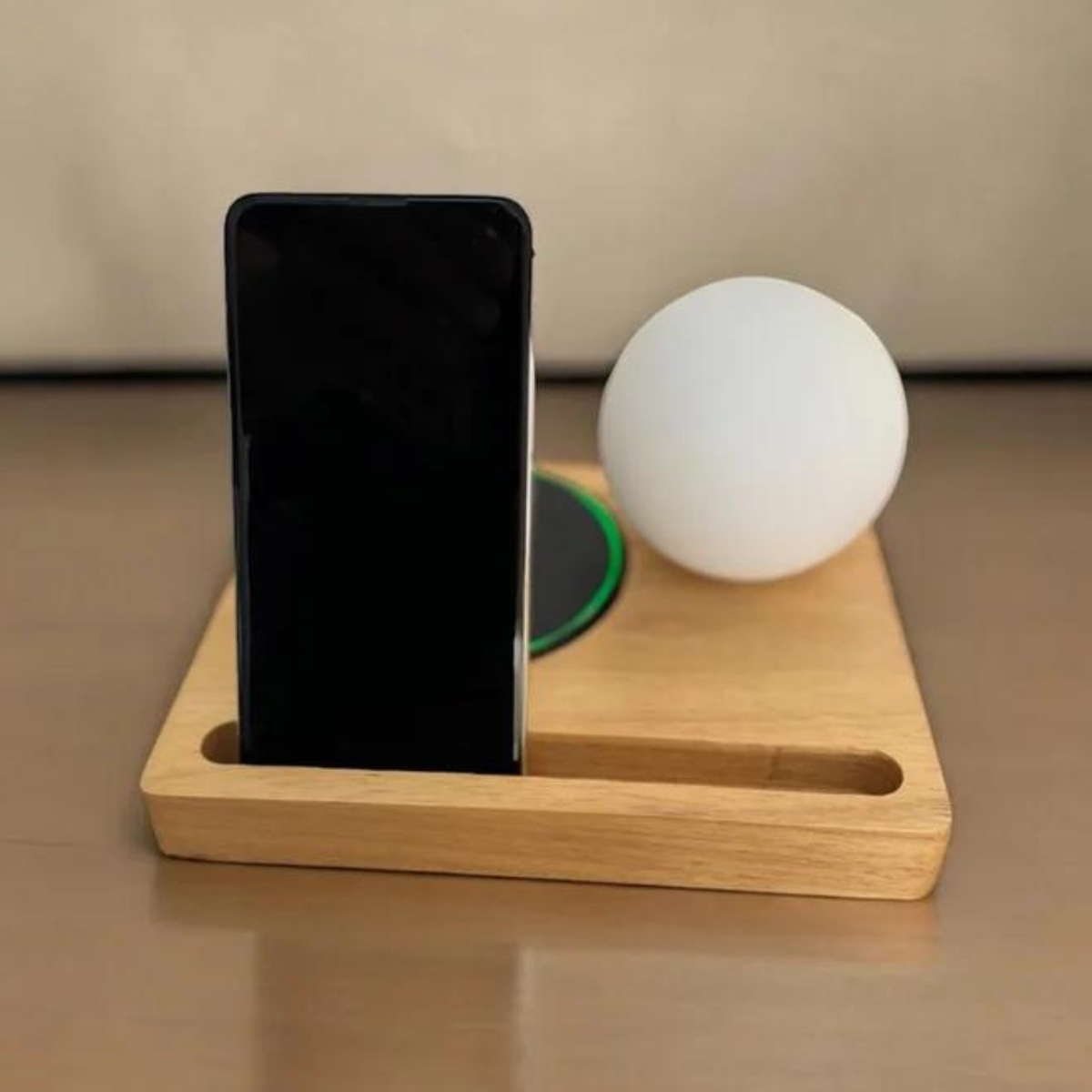 Luminária Orion com Carregador por Indução – Madeira Natural