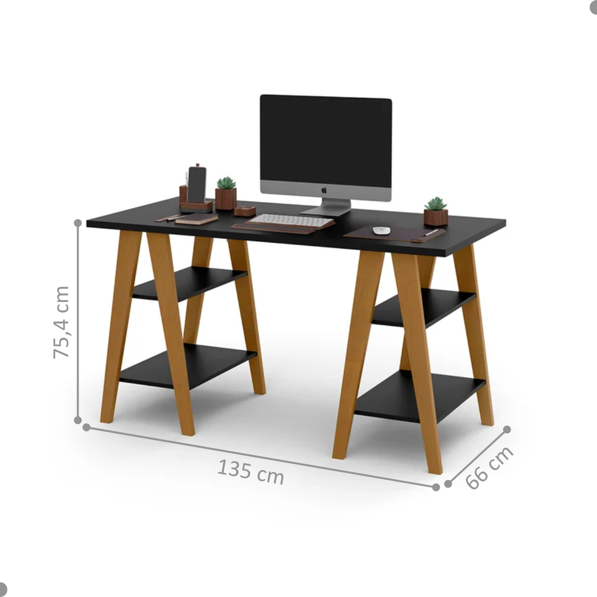 Mesa Escrivaninha Cavalete Tampo 30mm com 4 Prateleiras – Preto