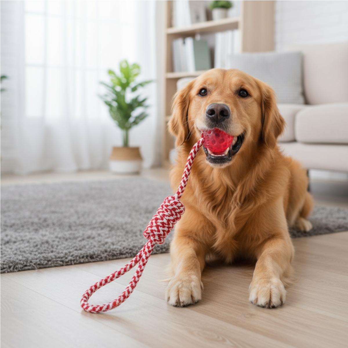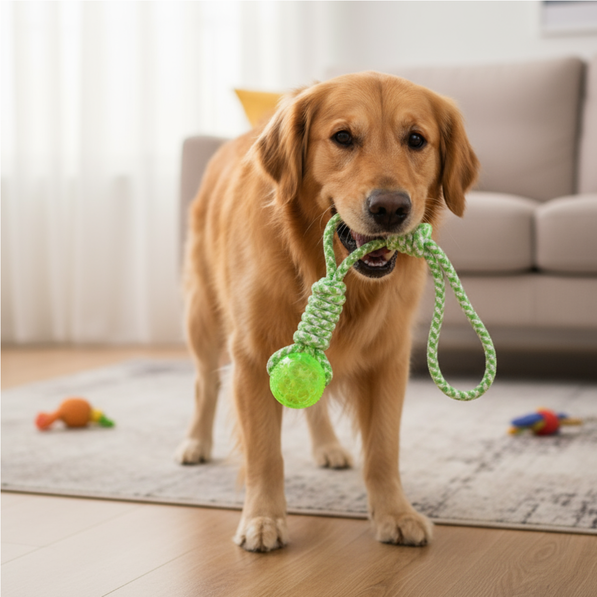 Mordedor Bola Corda TPR Resistente c/ Alça 34cm – Lovely Vibe