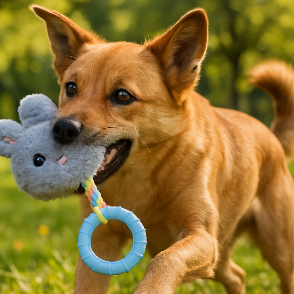 • Design multifuncional: pelúcia + corda + mordedor em um único brinquedo.