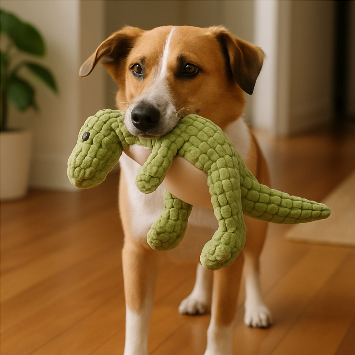 Brinquedo de pelúcia em formato de lagarto com 35 cm, feito em poliéster macio e textura corduroy. Leve, flexível e ideal para cães que gostam de carregar, sacudir e morder suavemente.