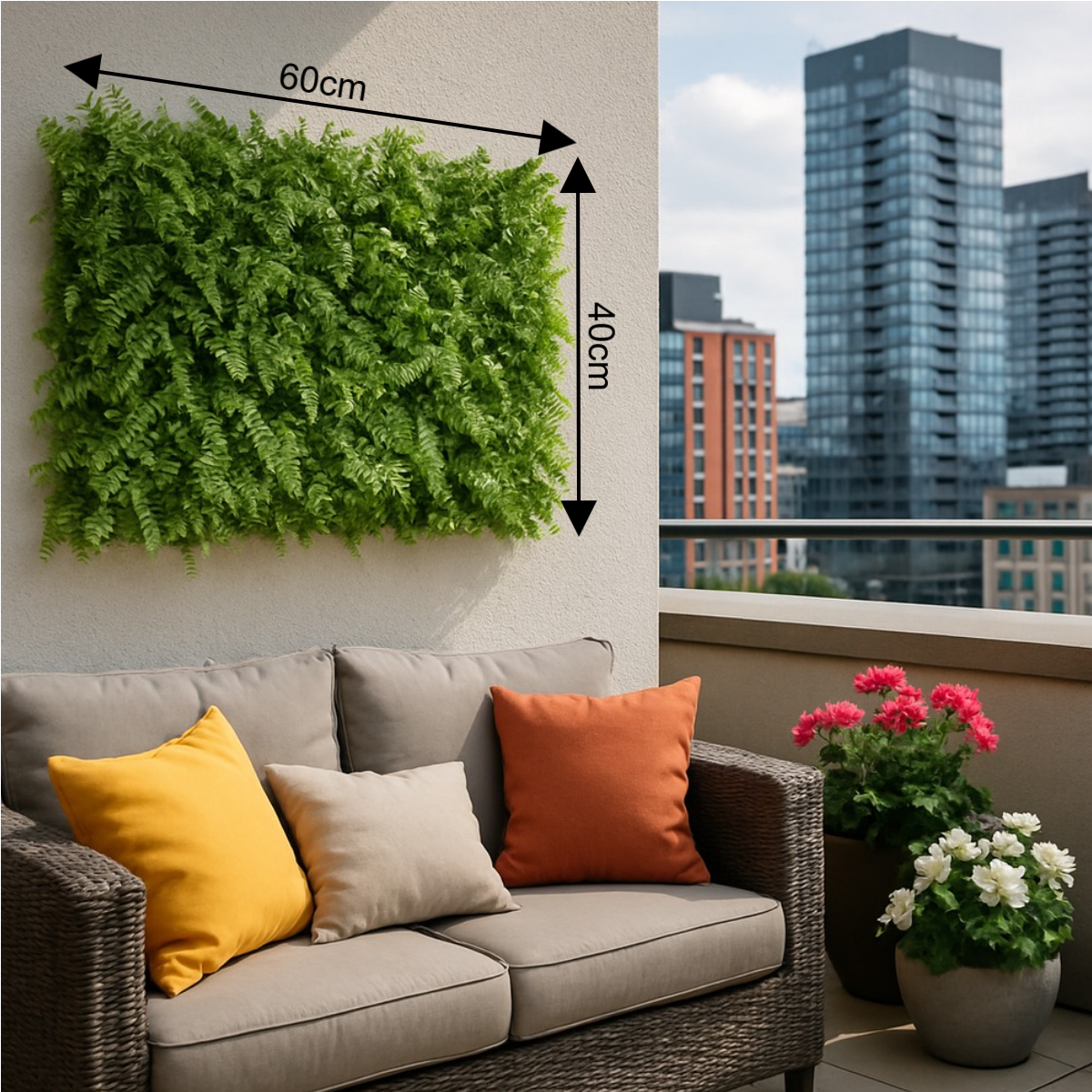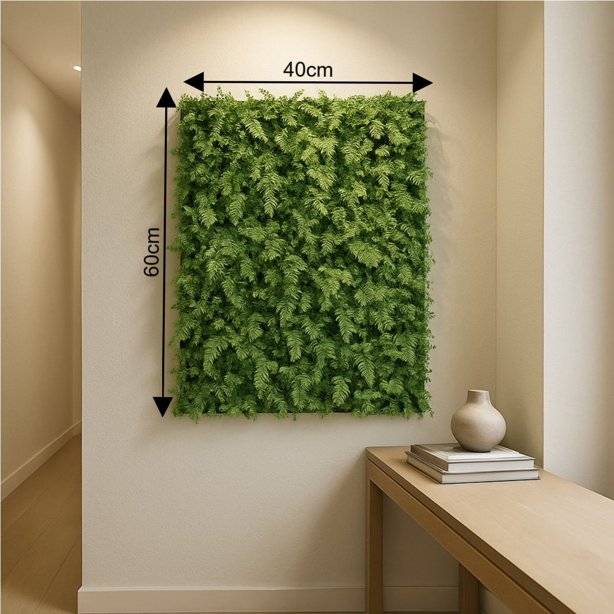 Placa Jardim Vertical Samambaia Mista Luxo 40×60 cm – Proteção UV e Retardador de Chamas