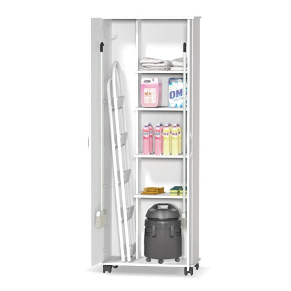 Seu ótimo espaço interno permite armazenar roupas, objetos, produtos de limpeza ou itens diversos, enquanto o suporte cabideiro amplia as possibilidades de uso. Os rodízios facilitam a movimentação, tornando o dia a dia mais prático. A estrutura em MDF/MDP garante resistência e durabilidade ao móvel.